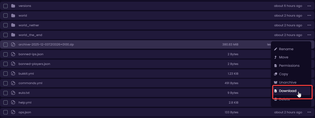 If you have a server at WiseHosting and want to take a break for a little while, you can always download all of your server files at any time to your own PC. This way, you can always continue your progress later on when you’re back at your 2-week Minecraft phase.
