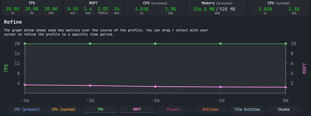 TPS directly determines whether your server feels responsive or not. Unlike client-side FPS (frames per second), which only affects individual players' visual smoothness, TPS affects everyone on the server simultaneously.